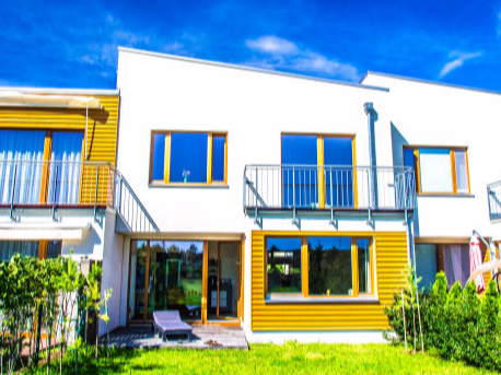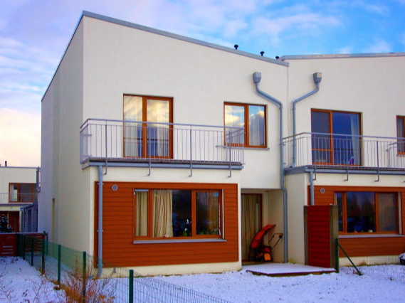 Mūsu mājas būvētas pēc labi pārdomātiem projektiem, kas projektēti vācu arhitektu birojos. Sākot būvniecību mēs pilnībā nomainījām grunti divu metru dziļumā, pieberot speciālu smilšu-grants maisījumu, lai pamatiem nodrošinātu stabilu pamatu. Tāpat mēs palielinājām māju platību, padarot tās ērtākas ģimenēm ar dažāda vecuma bērniem. Mūsu mājas dēvē par “rindu” mājām, taču tām nav kopējas sienas ar kaimiņu mājām. Katrai mājai ir sava atsevišķa siena ar pilnvērtīgu skaņas un siltumizolāciju. Starp blakus mājām ir gaisa sprauga, kas pilnībā izslēdz, ka jūs dzirdēsiet skaņas, kas nāk no kaimiņu mājas.