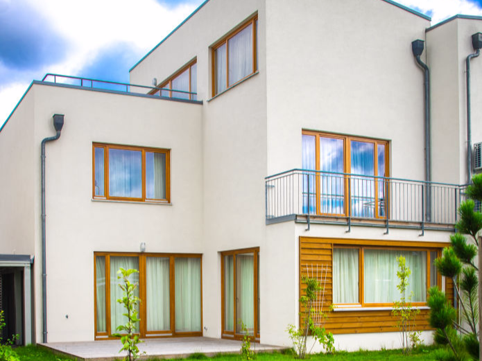 Sienas ir no 250 mm bieza gāzbetona un ārējā siltumizolācija no 150 mm biezas cietās minerālvates ar ilgtspējīgu dekoratīvo apdari.